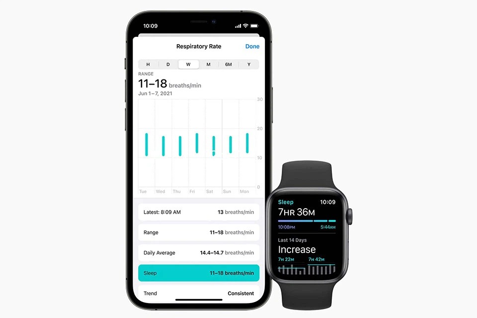 Ở phiên bản watchOS 7, Apple đã cho ra mắt tính năng theo dõi giấc ngủ. Chức năng này giúp người dùng theo dõi thời gian và chất lượng giấc ngủ của bạn. Và ở phiên bản watchOS 8, Apple bổ sung thêm chức năng theo dõi nhịp thở.