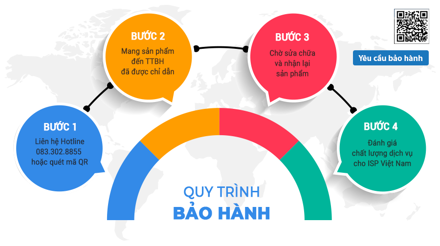 Sửa chữa, thay thế các linh kiện hỏng hóc trong thời gian bảo hành hoàn toàn miễn phí. Trong trường hợp không sửa được, hoặc không có linh kiện để thay thế, ISP Việt Nam sẽ tiến hành đổi theo quy định cho khách hàng.